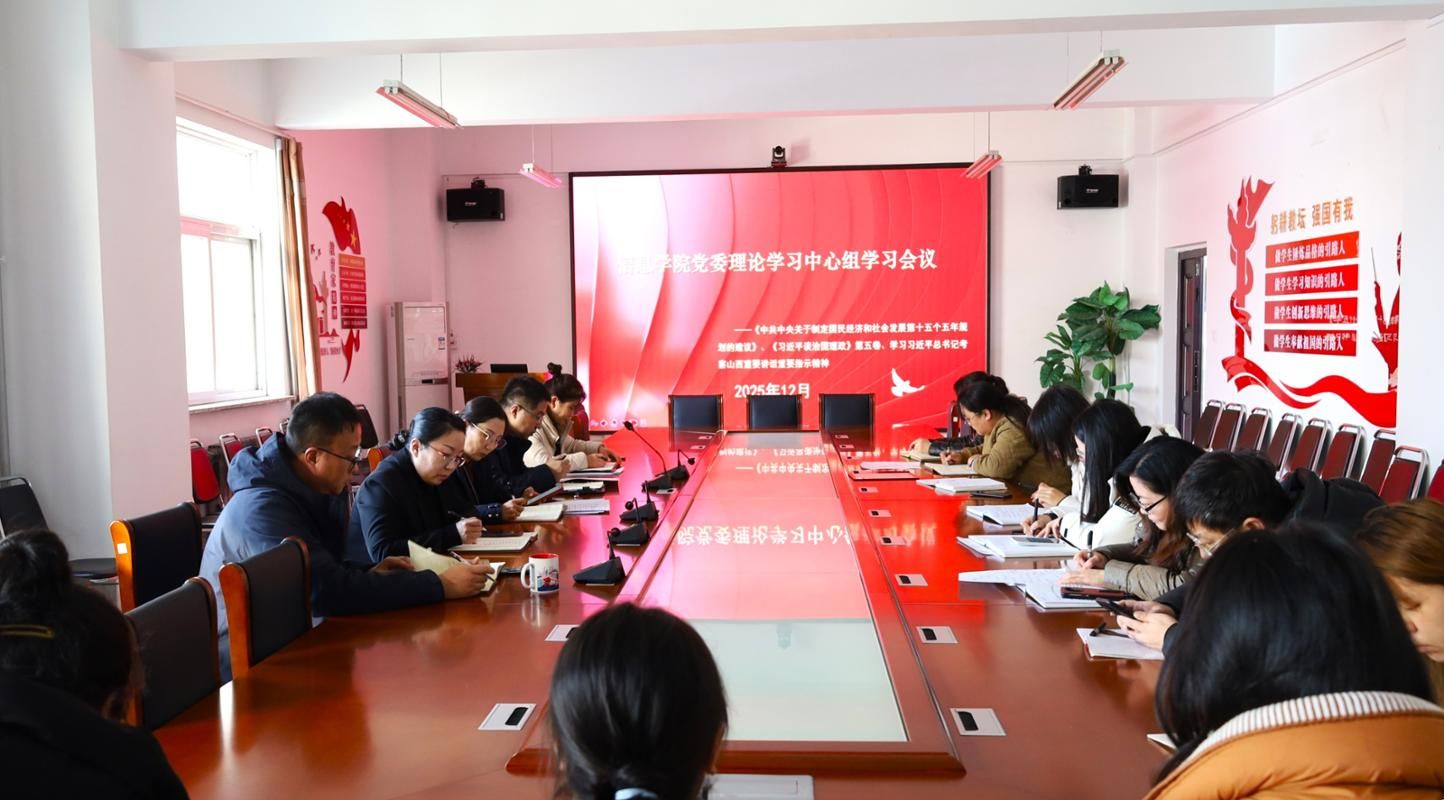 召开党委理论学习中心组(扩大)学习会。本次学习以深入学习领会党的二十届四中全会精神和《中共中央关于制定国民经济和社会发展第十五个五年规划的建议》为核心,紧密结合学院“十五五”发展规划的制定与实施,进行了深入的学习交流和研讨。学院领导班子成员、党委委员、全体行政人员、全体辅导员参加了学习会。会议由学院党委书记高萍主持。