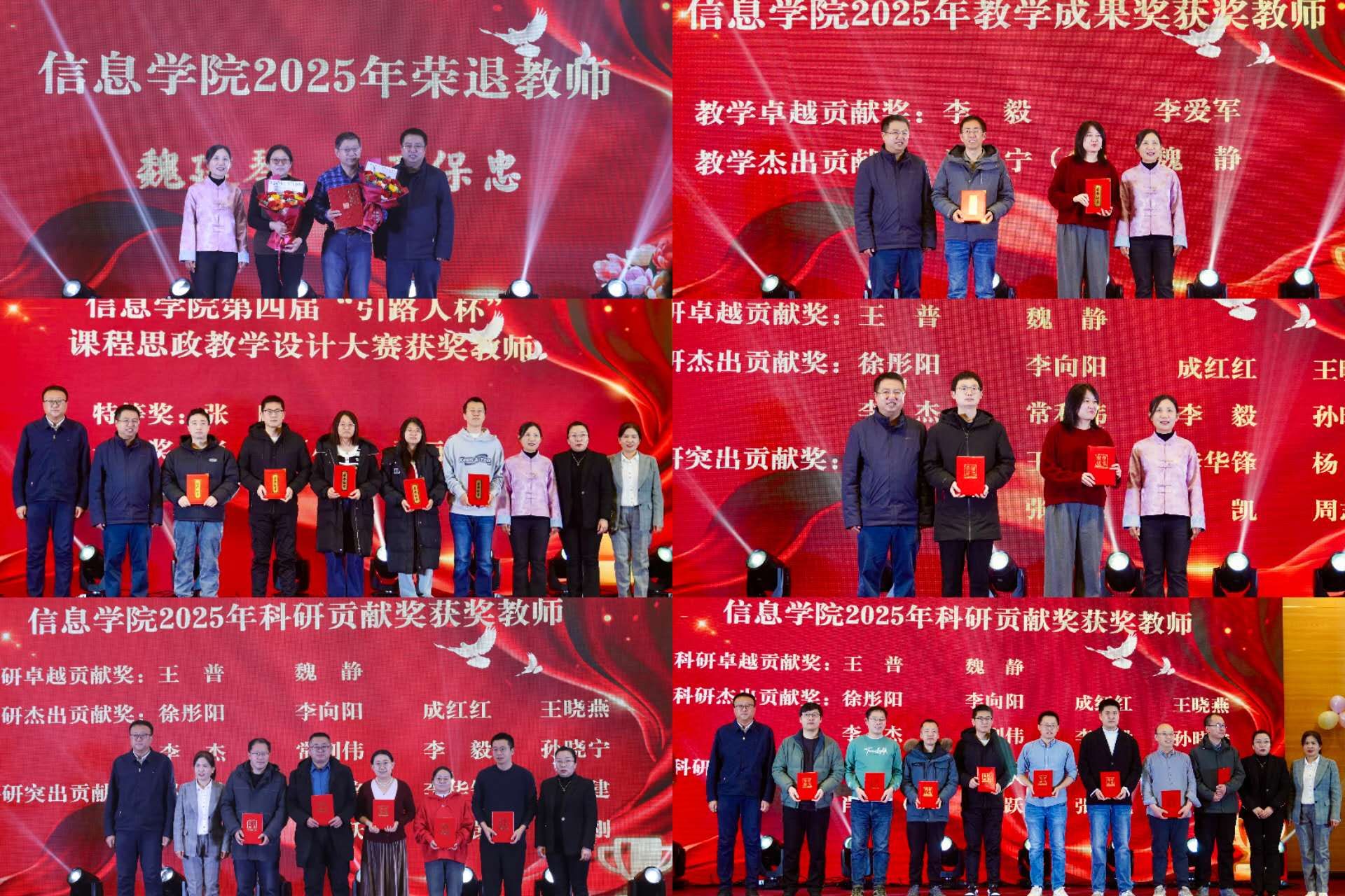 专门为2025年退休的魏建琴、王保忠两位教师举行了荣退仪式,感谢他们在学院数十年的坚守与奉献。为表彰深耕教坛、勇于创新的优秀教师,学院为4位教师分别颁发了教学卓越贡献奖和教学杰出贡献奖,同时为a片直播